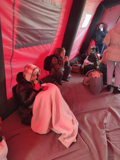 Alla and Soniia arrived together in Lviv to spend the night in someone’s office, eventually catching a passing car to the border checkpoint with Poland.